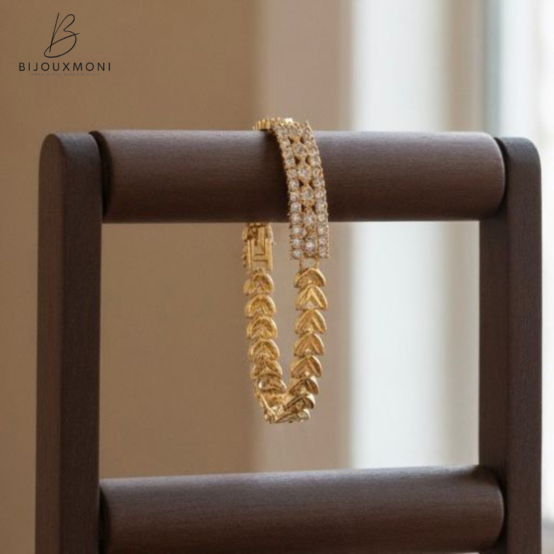 Add a touch of timeless elegance with our Luna Heart Link Bracelet — a stunning piece that blends romance and sophistication. Featuring delicate heart-shaped links in 18K gold plating, paired with a double row of shimmering cubic zirconia stones, this bracelet sparkles effortlessly from day to night.